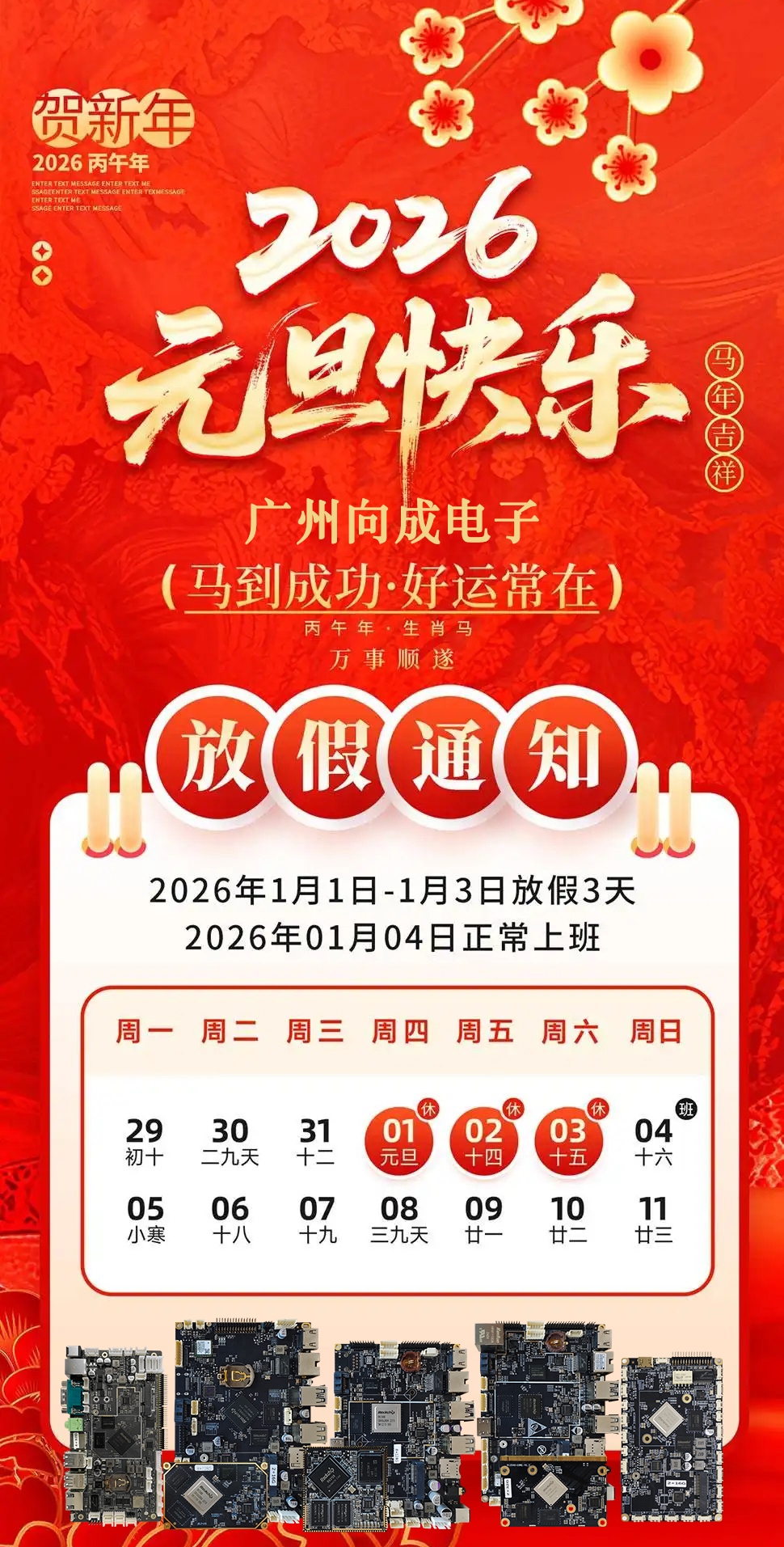 向成電子2026年元旦放假通知